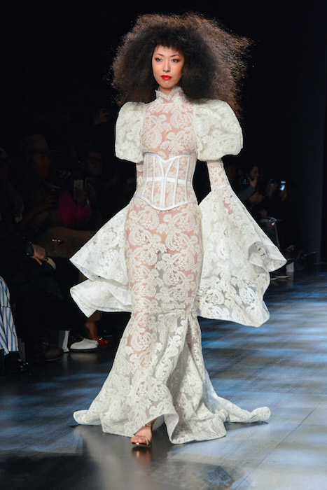 Charlotte: Michael and I collaborate really well. Ultimately we choose what goes down the runway together. At times he takes the lead, and at other times, I do. For the makeup we worked really closely with Edward Cruz, our key makeup artist, and for the hair, that was a bit of a push and pull between Michael and I. But once Kien, our lead hair stylist tested it, we both knew it had to be the big hair. It was very important to me that we made all the white look like a color story as opposed to a bridal collection.