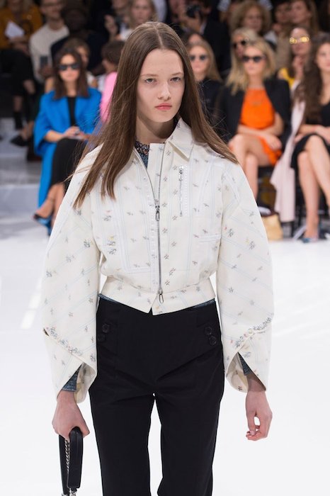Dior’s SS15 collection included more robes, tied at the waist with leather belts, never losing sight of the female form. What an incredibly classic beautiful collection. From lighthearted dresses to light color patterns, this is quite the collection for a working woman with style. CHRISTIAN DIOR spring 2015 PFW selects by Brigitte Segura, written by Elisa Jardines.