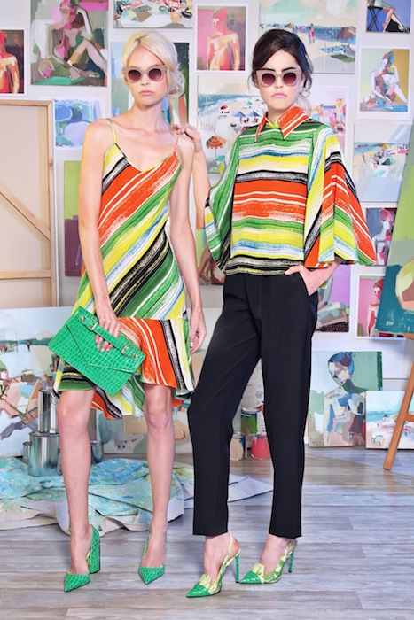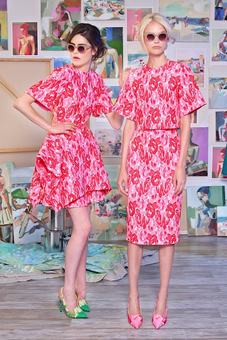 Inspired by the vibrant and colorful abstract paintings of Teil Duncan and the elegance of Tokyo’s sakura season, CHRISTIAN SIRIANO‘s resort 2015 is nothing short of colorful and sweet. Teil’s graphic colorfuland whimsical beach scenes helped set the tone for this playful collection.