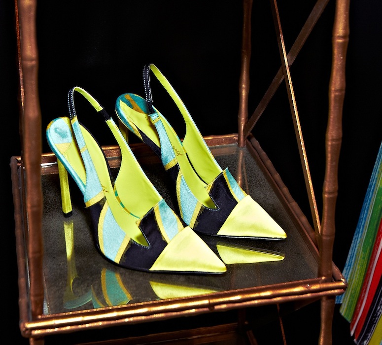 Updated and refreshed classics silhouettes in bright floral brocades, and bold graphic stripes. The oversized petal leaf pattern was one of our favorites, especially in the long piece.