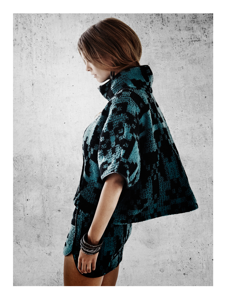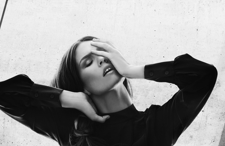 NYC based photographer Christopher Logan lent his shutter skills for the “Body Talk” editorial. A blend of black and white and soothing, yet shocking hues brought the overall minimalism to the max. Whether it’s a powerful profile or model Stephanie C. stretching across the imagery, Logan shows how to blur beauty for a mystifying affect. Stylist Dann Ryan’s choice of both voluminous and sleek looks increased the modern drama in Logan’s medium, while letting the easygoing pieces look adaptable beyond the shoot’s Miami location.