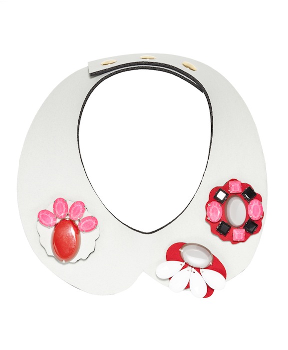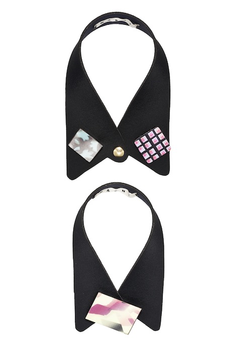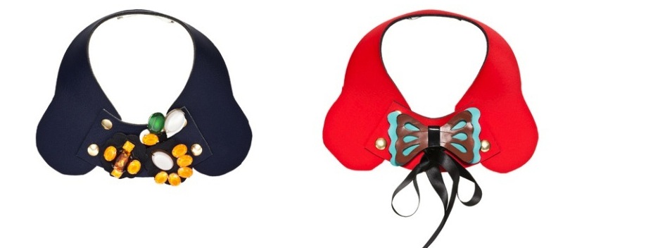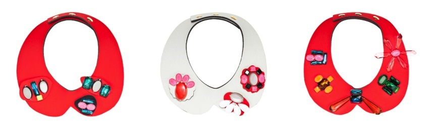 give the girls a COLLAR: a MARNI winter edition 2012 variety pack of embellishments for the neck. Witty, silly, darling – a taste of SWEET decoration to add without a big commitment, even for a minimalist. These cuties snap on or tie at the neck, and can be removed in an instant if they are too much for the occasion.