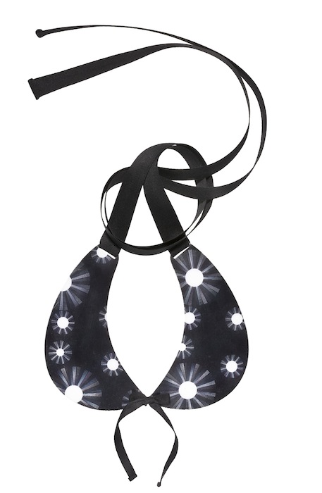 We’d probably sport these COLLARS like CANDY on a Tshirt, but they are versatile enough to add to a dress, sweater, and to ‘double collar’ a shirt. the black Neoprene collars have brooches made of resin matching patterns from the MARNI fall 2012 collection, and the rounded collars are embellished with bows and stones in GEO shapes and bright accents. We liked most of these [harmonically] clashing batch of accessories, take a look-sy.. by brigitte segura.
