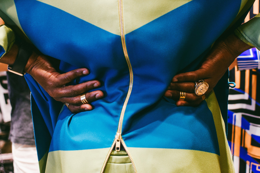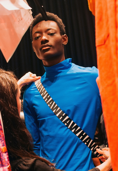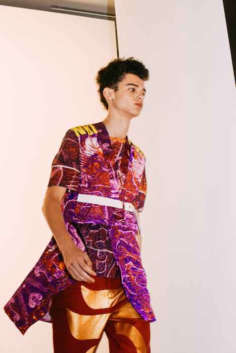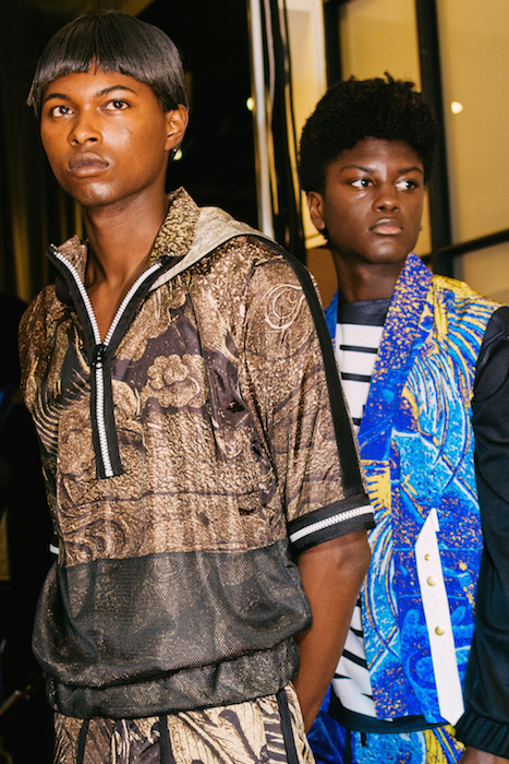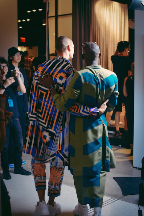 Rich waves of saturated tones of blues, purples and spikes of sunny yellow and tangerine are immersed in patterns to complement the cool street vibe. A peek at some favorite looks and moments, behind the scenes and on the runway from one my fave young designers – now a DUO at WOODHOUSE ARMY