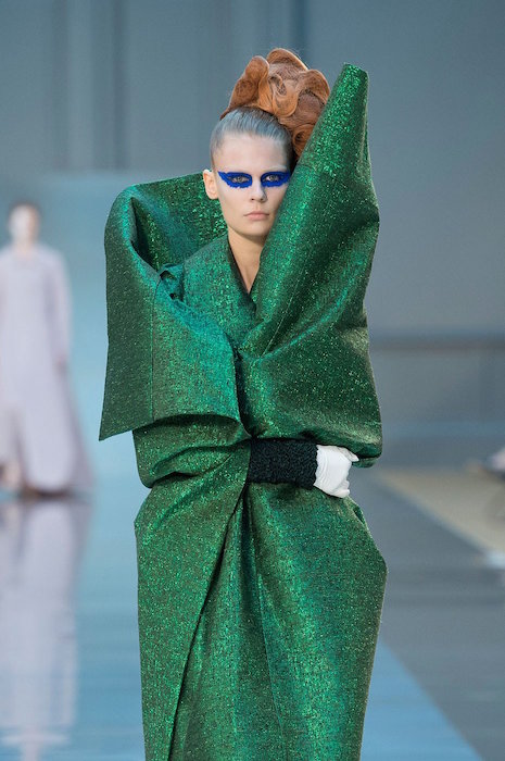 Not just the clothes, the beauty creatives added to the magic, with hair by Eugene Souleiman texturized in color + voluminous shapes complementing Pat McGrath’s don’t mess with me x sweet eyes. Here are some of our favorite details to take another look at – and get inspired.