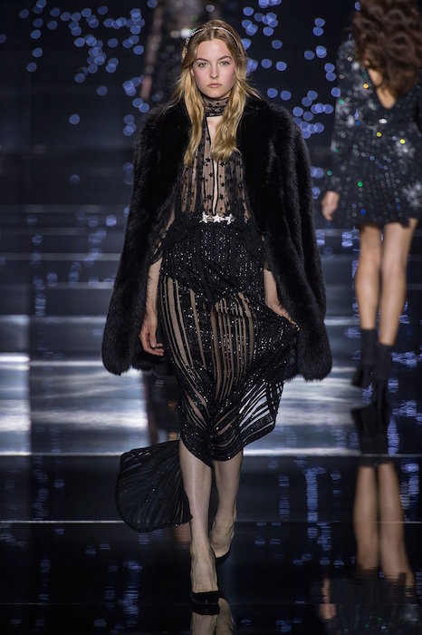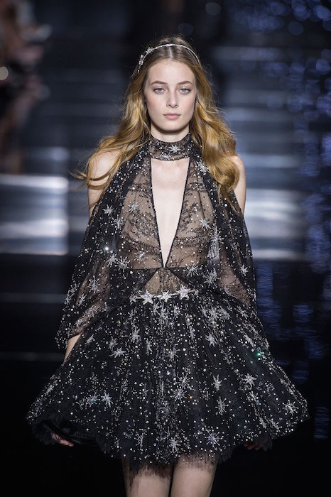 As the Gala season is on, and the holidays are fast approaching, we’re taking another look at couture. Known for romantic, lace, and very embellished gowns, Zuhair Murad‘s fw15 had stars a-plenty to add. From delicate all over sparkled mini stars to hair accessories with multiple etoiles, the glittery silver is fresh for looks in winter.