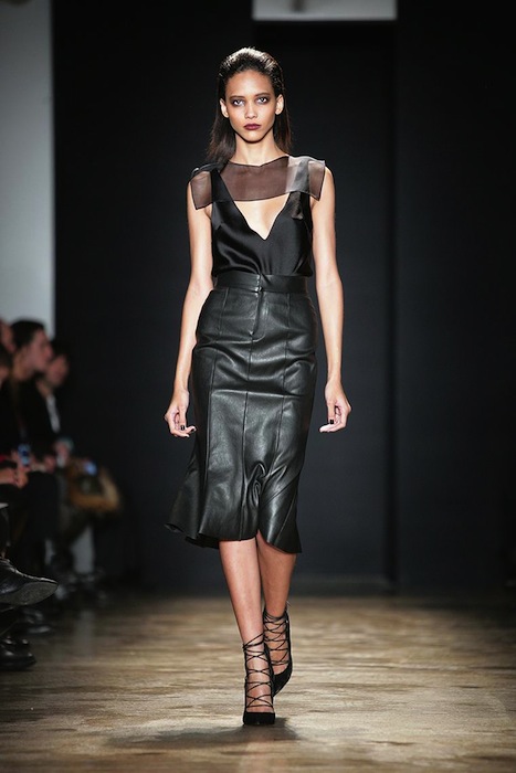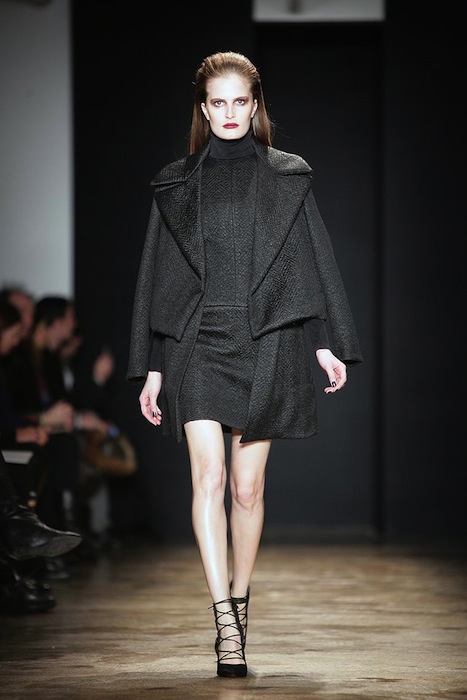Design duo Carly Cushnie and Michelle Ochs offered looks ranging from puritanical to out right seductive for Fall 2013. The drama laden designs inspired by early Americans did the trick with slim-lined silhouettes. We were drawn to the slightly more scandalous end of the spectrum, complete with mystery and sex appeal all wrapped up in a fashionably minimalistic package.