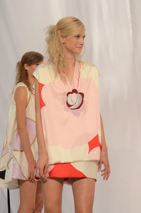 Party girls, rejoice! Cynthia Rowley’s spring 2015 collection is here! 60’s mod-inspired mini dresses, bell-shaped skirts in bright colors, with bits of gold accents. Playful pieces made the sixties contemporary, but the seventies were not forgotten by Cynthia, as floral prints and cut out graphics made an appearance.