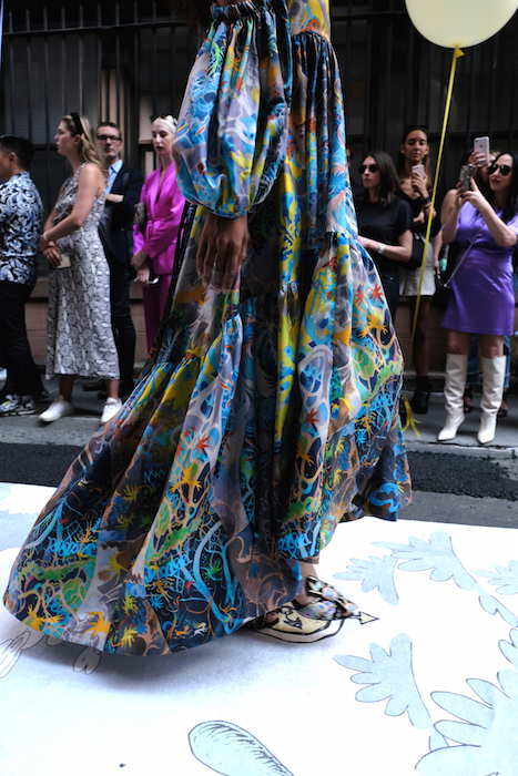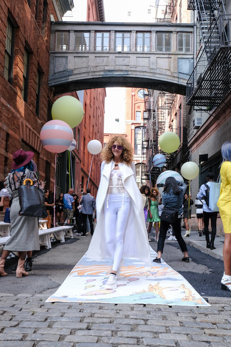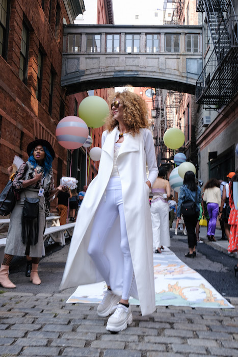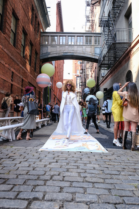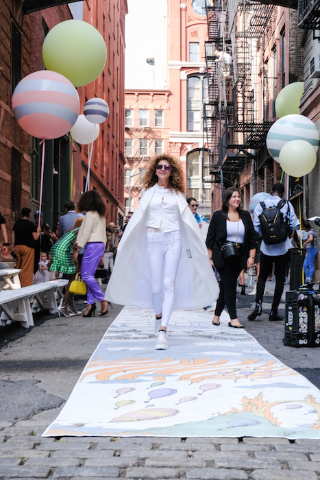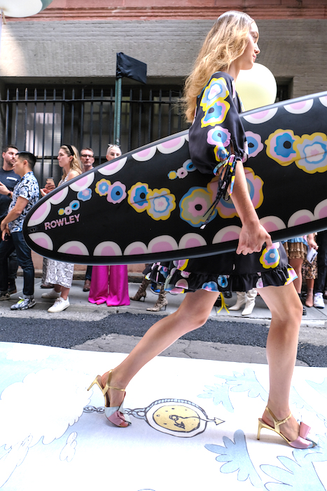 taking it literally to the streets in the city, Cynthia Rowley’s marvelously stylish patterns walked the walk in TriBeCa during NYFW. ROWLEY’S spring 2020 bouquet of color, surf style, balloons and sparkle were set against the downtown backdrop flawlessly.