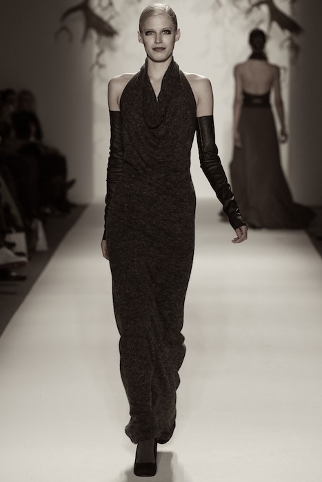 The most notable pieces in the collection were dresses, of course. The long, the cocktail and minidresses were fab. We loved the draped neck knit blue piece, and a few shiny dresses made from a gorgeous beaded material that shimmered but wasn’t outlandish. Though we saw more than a usual dose of ‘slouchy’ sportswear from CESAR, we kind of like it – and it wasn’t made for a special occasion. Don’t forget to check out the feathered hat. fdmLOVES selects from CZAR cesar galindo fall 2013 by Brigitte Segura, Written by Barii Suzuki-Bell.