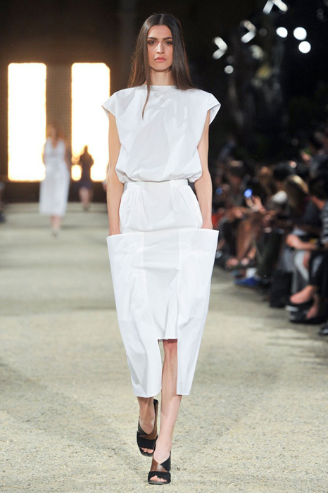 There’s a few short and long playsuits that look fiery. Two white and black dresses feature futuristic pocket cuts that are ruched in the middle. Lots of influences are evident in this set but it still looks so cohesive. Proving to never settle for just one vision, Doma shines. fdmLOVES DAMIR DOMA resort 2014 selects by Brigitte Segura, written by Allison Ripa