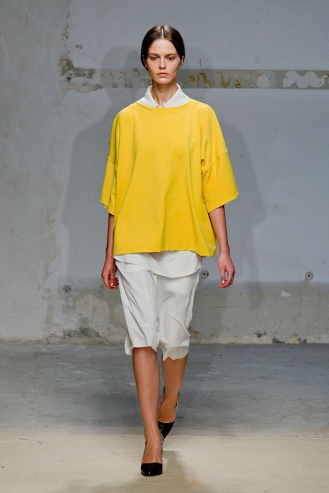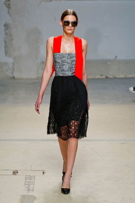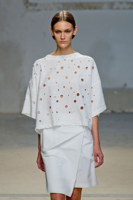 It’s human nature to keep things simple. That was what Damir Doma wanted and achieved for his Spring 2014 collection held during Paris Fashion Week. It’s a tranquil set filled with soothing hues of white, tan, yellow, and black, with a few orange surprises here and there. The cuts are gorgeous and a particular eyelet detail appears several times on a crisp dress, top and skirt. Every single look feels polished and pristine, a really lovely assortment with modern non-frilly cuts.