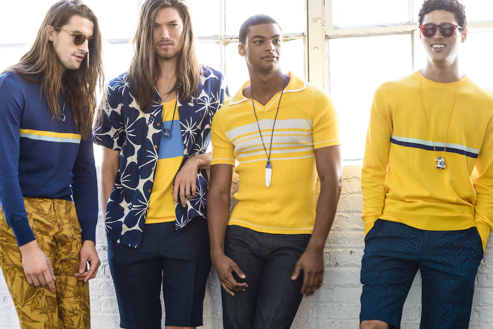 The David Hart ss17 collection at NYMD during NYFWM is a dance of vintage inspired surf and tropical motifs set against muted tones with pops of sunny tones and interesting jacquards + other textures.