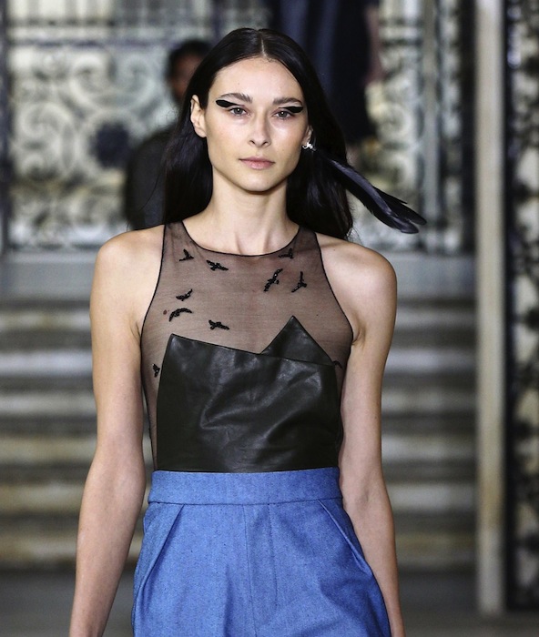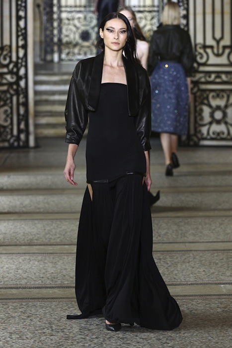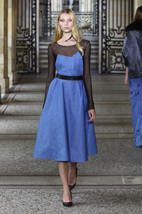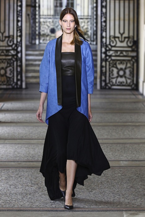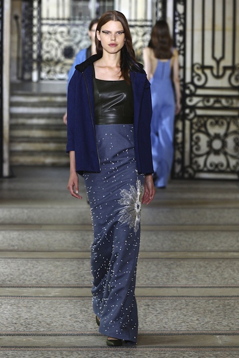 Haute Couture is on in Paris! Didit Hediprasetyo couture fall 2014 Paris gives us an early Nineties vibe with a 40’s flavor of New Yorkers in denim. Inspired by the the street energy of East Village with the the effortless sensuality of Paris, an urban dance meets couture luxury. Everything is here and now, with a mix of modern silhouettes like a leather boyfriend jacket paired with a dress with a train – there’s no retro here, this is today’s Couture.