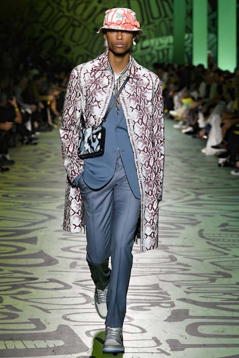 DIOR mens meets Art at Basel this season. For the fall 2020 collection of Dior Homme, creative director Kim Jones combines psychedelic elements with a tribute to haute couture. Embroidery, beading, tailoring savoir-faire including details of hand-stitched buttons reminding us of the original ‘bar suit’ were on the the runway in Miami.