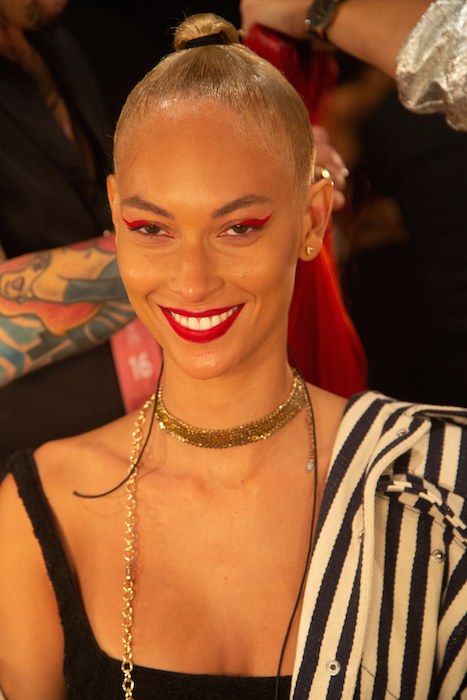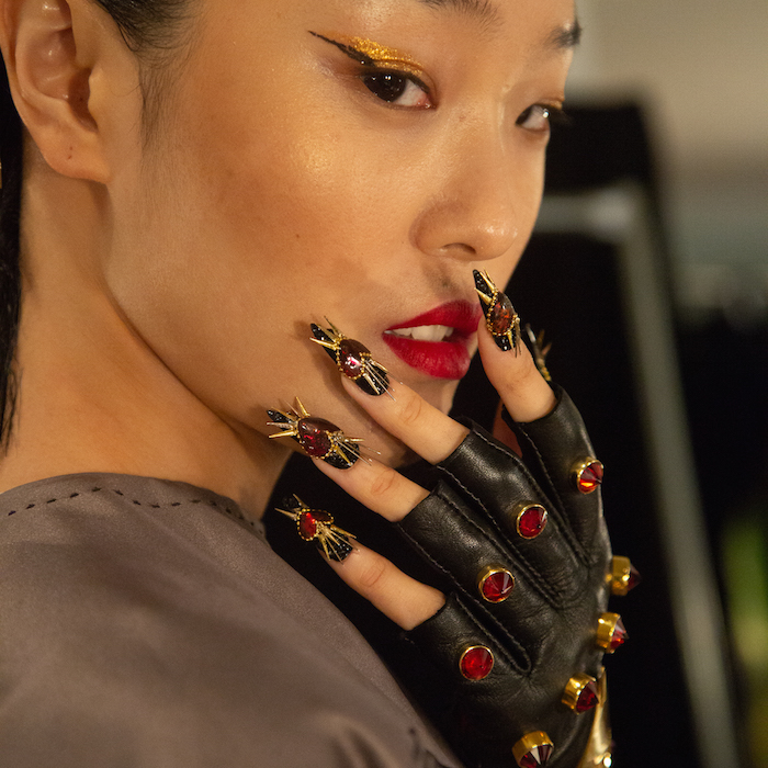 Dominique Jackson of POSE (FX) closed the show with a number. Here’s a peek backstage at the people and details of what we saw. From headpieces to exquisite jewelry by heartofbone_ matched with wicked nails by CND.