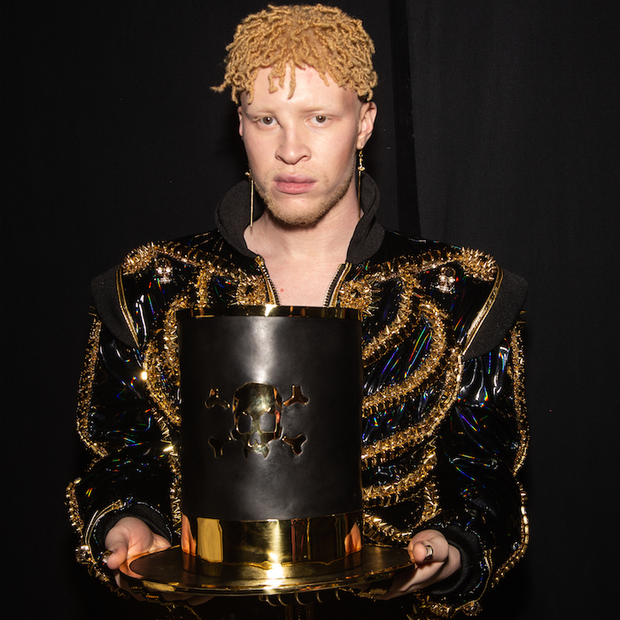 The show opened with Phillipe Blond in stunning mirrored full-length coat inspired by the Evil Queen, followed by Shaun Ross (look inspired by Dr. Facillier), the Dupont Twins (looks inspired by Flotsam & Jetsam), Paris Hilton (look inspired by Cruella De Vil), YouTube personality Patrick Starrr (look inspired by Ursula) and closed with Dominique Jackson (look inspired by Malificent).