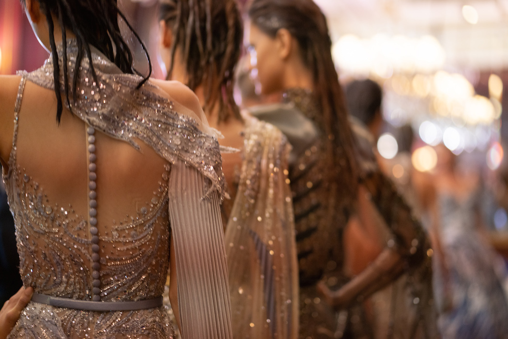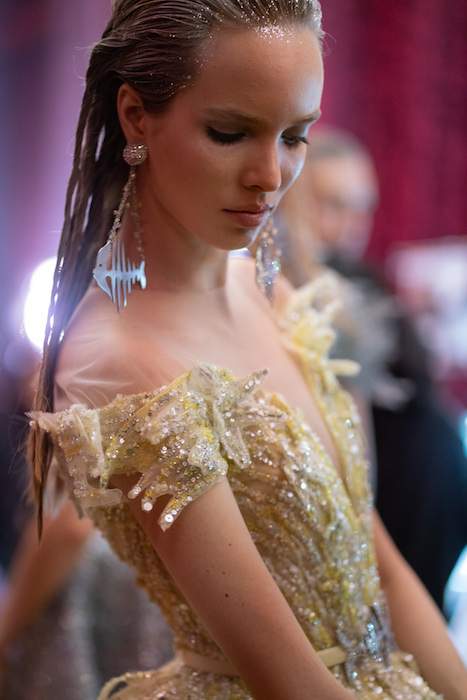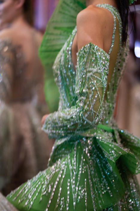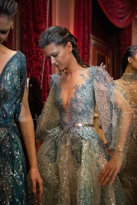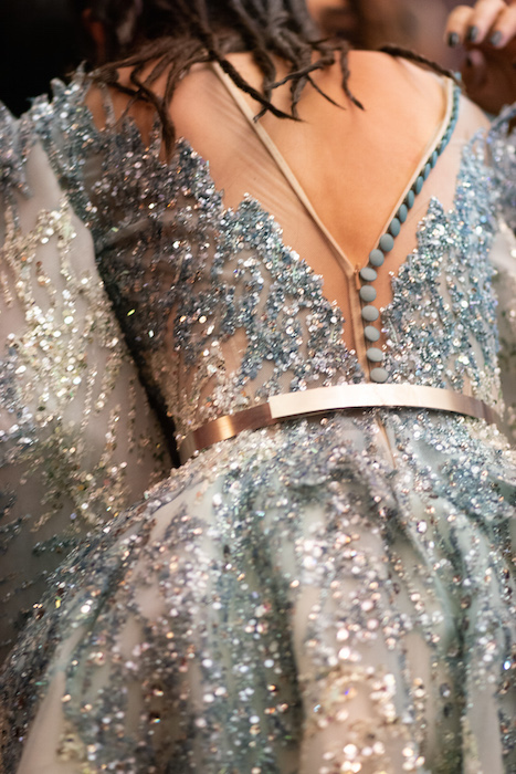 ZIAD NAKAD’s sparkled glamour dusts just about every extravagant piece in his Spring 2020 couture collection shown during Paris Couture Fashion Week. Inspired by constellations and Orion, gleaming silver and shimmering gold star-shaped patterns re-create a ‘constellation of dresses.’ Sparkling flickers of crystals, stones and sequins detail the pastel and metallic flowy gowns.