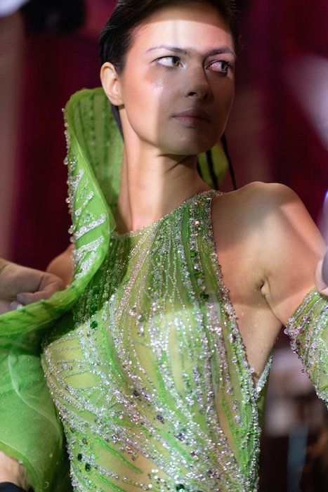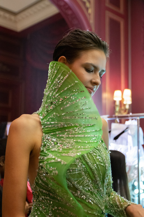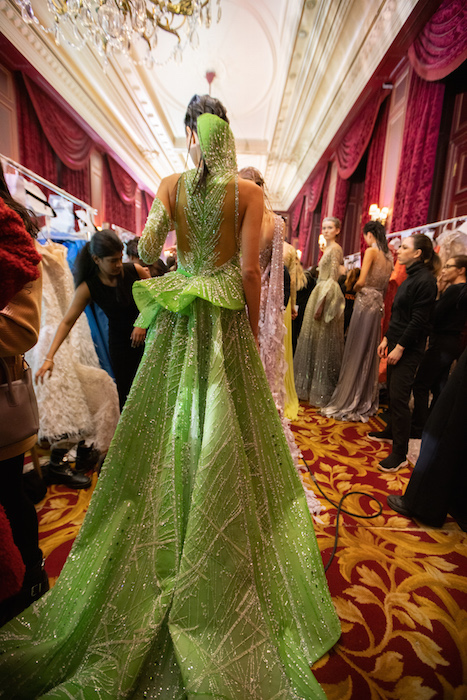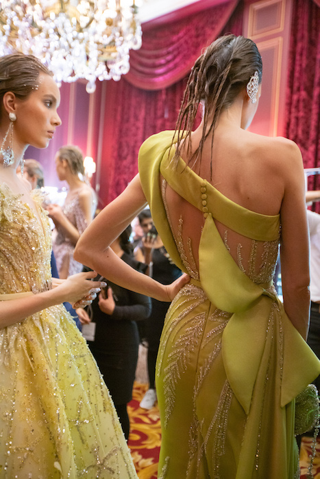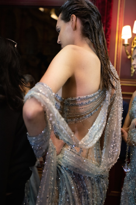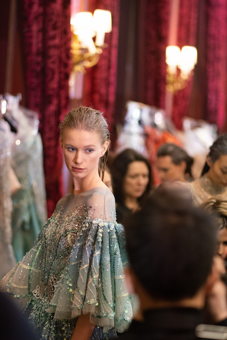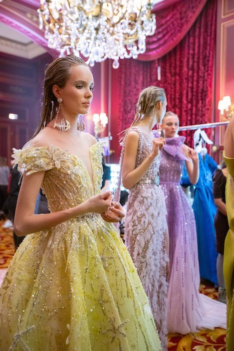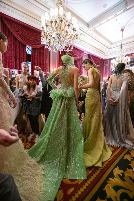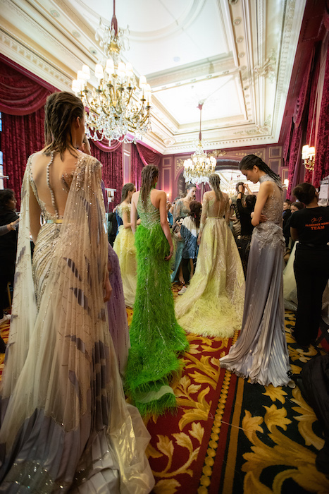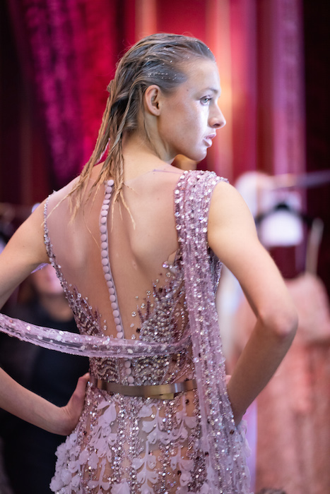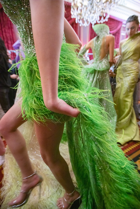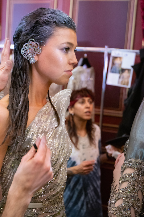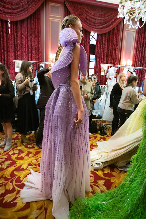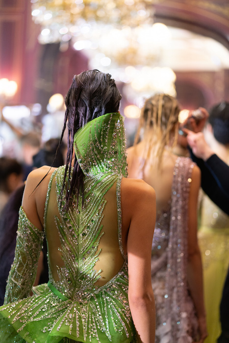 Check out the marvelous cuts, and so many favorite looks. Can’t wait to see who wears this on the red carpet. Here’s a view behind the scenes backstage, with runway view (and separate post) coming soon!