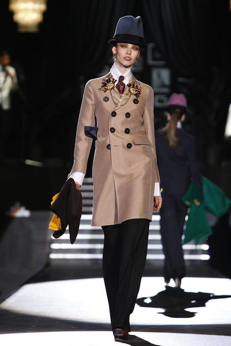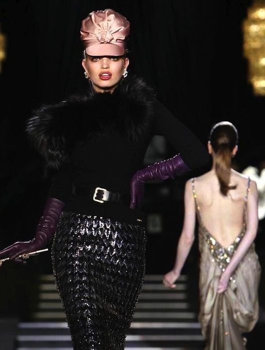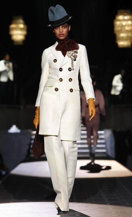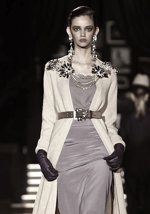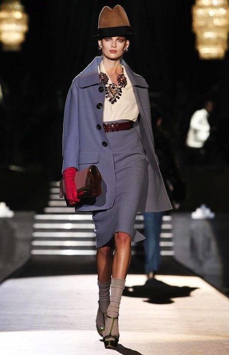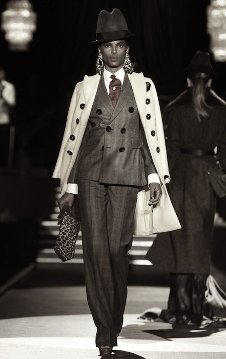 Dean and Dan of Dsquared2 flashed back to the jazz age of the 1940s with a fall 2013 collection that swept us to another era at Milan Fashion Week. The Caten brothers favor trusty suits and denim to no end, but who knew this tailoring two-some would do such a nice job with evening-ish wear. The winning cast of girls on the catwalk included Cara Delevingne, Lindsey Wixson, Daphne Groenveld and fresh face Tsheca– all strutting the Dsquared2 sass to our delight.