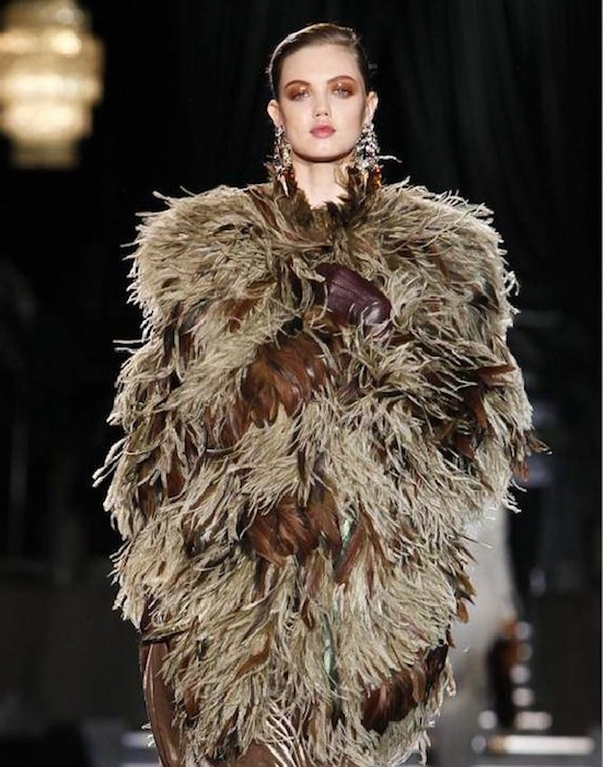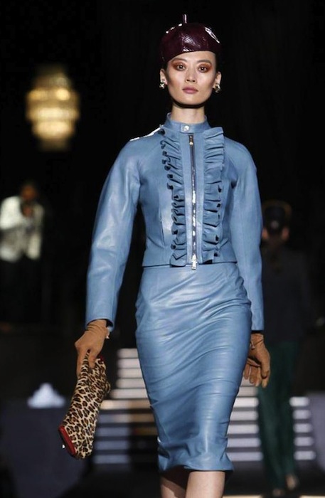 The beautiful color palette in this collection mirrored the era in using silky blues, faded olives, modest purples, perfect plumes and bold reds, all emphasized with metallic fabricated details. The dresses were just as abundant as the pants, a bit out of the norm for DSquared2, but the BOLD attitude prevailed. Hints of “Breakfast at Tiffanys” were an added bonus with layered jabots, pimped up undos, holders, bold jewelry, peep-toe pumps, taking the cake for fun and a hint of flash on the runway. fdmLOVES Dsquared2 fall 2013 selects by Brigitte Segura, written by Julia Paulescu.