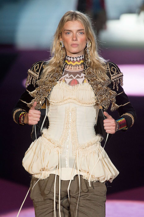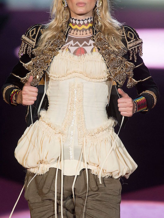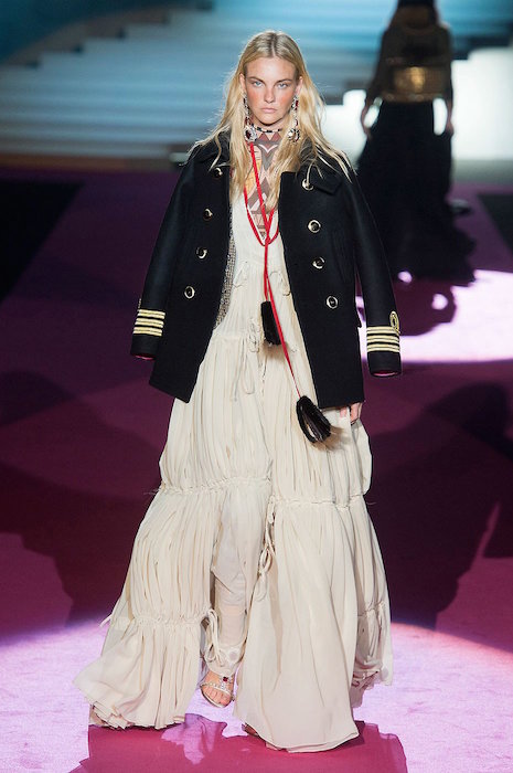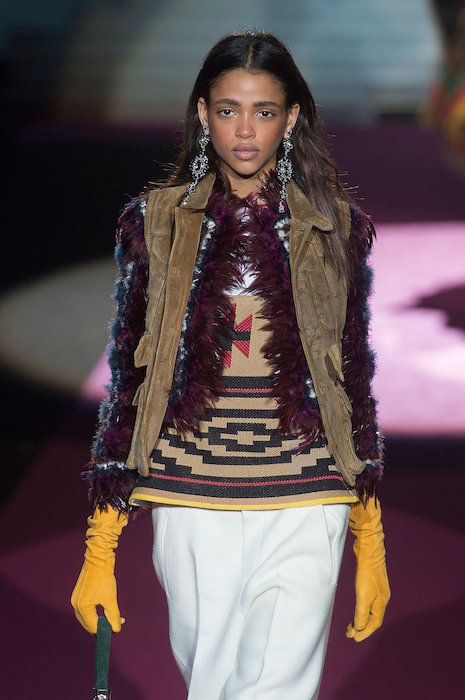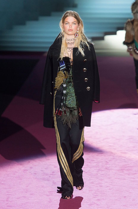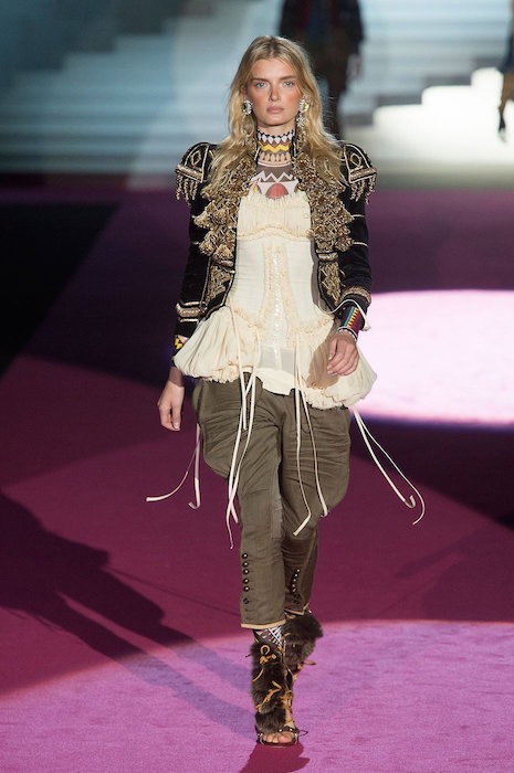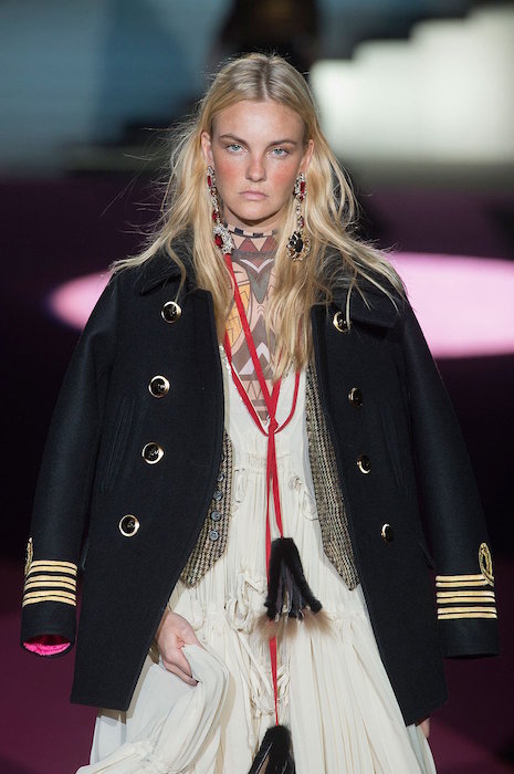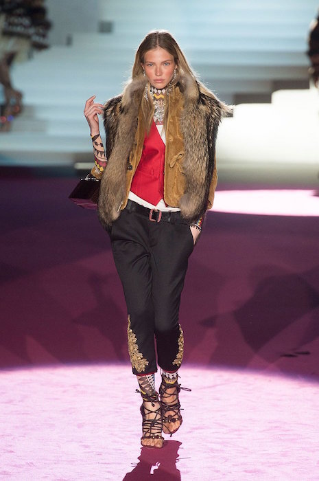 Layered in denim and lux, Dean and Dan bring us the Dsquared2 fall 2015 show. Beautifully textured and screaming luxury inspired by the woodsy outdoors, the collection still flaunted some feminine with Lily Donaldson showing off a stunning corset. Aya Jones, Daphne Groeneveld, and Sasha Luss were in the usual uber layered garb with a little feather and shine action, while the finale was a bit of “Little House on the Prairie” – except it was more like from the big house on the prairie… A little of what we expect at Dsquared2, with a fall 2015 twist.. we still love it.