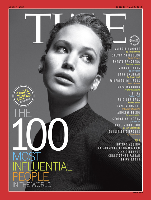 The TIME 100 features often-surprising pairings of the influentials and the guest contributors TIME selects to write about them. The tenth-annual list includes: President Barack Obama on Tom Coburn, Justin Timberlake on Jimmy Fallon, Oprah Winfrey on Shonda Rhimes, Michael Bloomberg on Jay Z, Hillary Clinton on Barack Obama, Claire Danes on Lena Dunham, Derek Jeter on LeBron James, Sarah Palin on Rand Paul, Chelsea Clinton on Malala Yousafzai,Ed Helms on Mindy Kaling, Ted Nugent on Wayne LaPierre, Jodie Foster on Jennifer Lawrence, Jon Stewart on Bassem Youssef, Eric Cantor on Joe Biden, Eric Schmidt on Marissa Mayer and many more. The list is divided into five categories: Titans, Leaders, Artists, Pioneers and Icons.