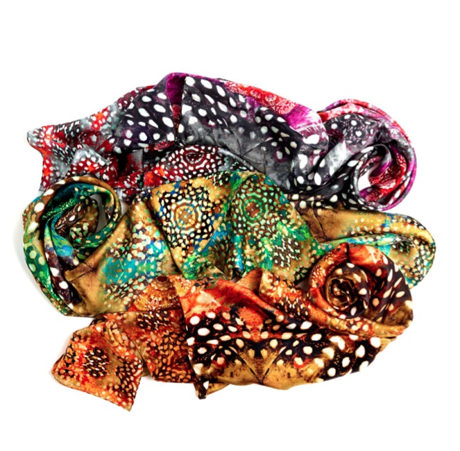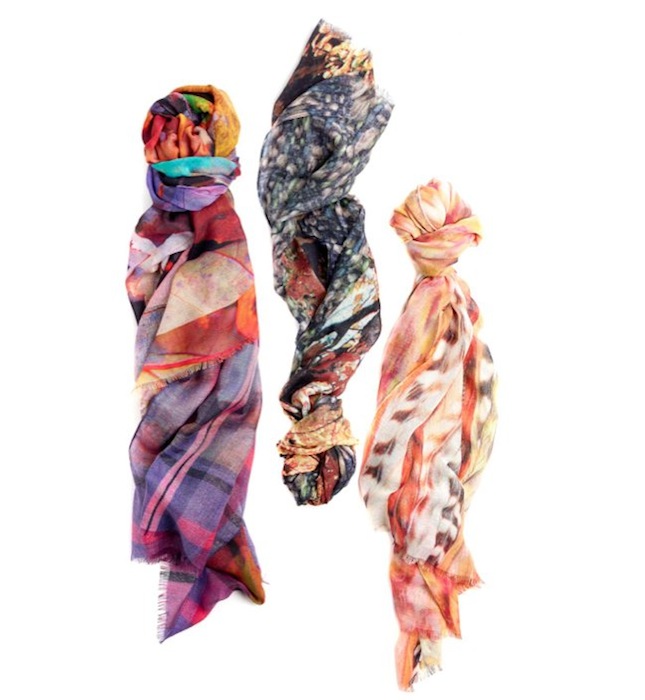 Layerable mix and match adornment – wraps, hats, gloves, you name it, you’re covered. Versatility in staying with over-sized scarfs in a variety of fabrications including sheer wools and silks, denim, and metallic elements. From chunky knits to woven plaids to prints, expression is easy while staying comfortably cozy, especially in newly featured shapes like the snood, the shrug, and the loop. Lightweight pieces are appealing throughout the year, and we really dig the nature inspired digitals applied in range of colors for the leaf and feather looks.