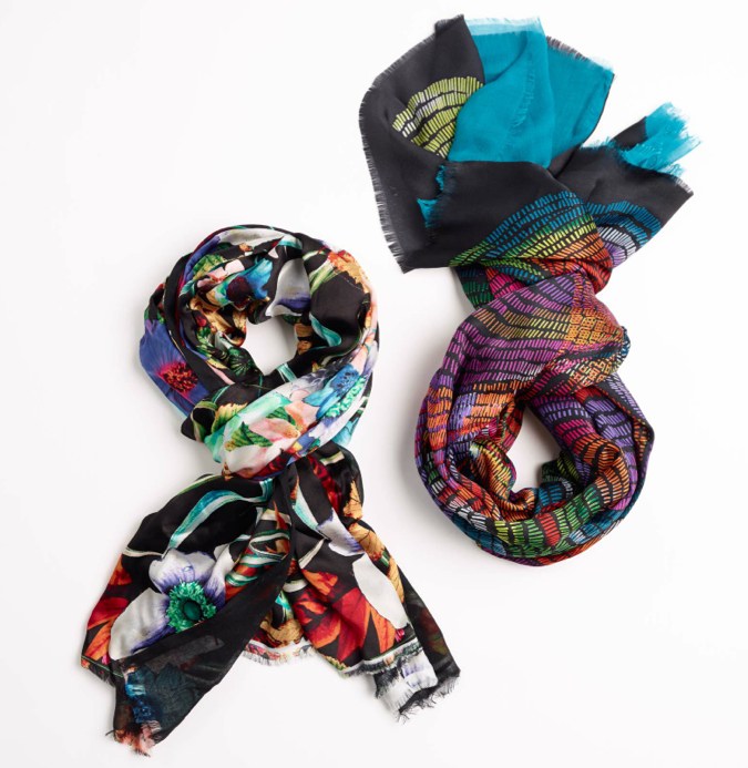 The fashion accessory company Echo was established with scarves back in 1923, growing over the years to include handbags, beachwear, and home décor. The brand stands out with the beauty of boldness with color and pattern while considering quality at every turn. For the fall season, cool weather add-ons turn into personalized statement makers. Visually appealing, enhanced by volume, and textured with interest, Echo is delightfully chic with an impressive assortment.