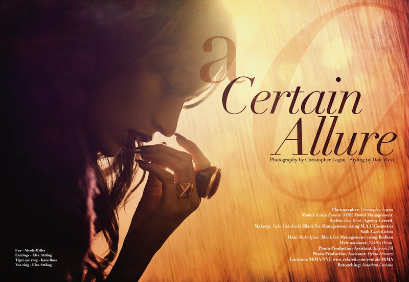 HOT! a CERTAIN ALLURE editorial with Tunisian model KENZA FOURATI photographed by CHRISTOPHER LOGAN for fiercive | japan. Shot at MiMA nyc, The looks include designers Carlos Miele, Nicole Miller, Randi Rahm, Krizia, and Kara Ross. Styled by Don West with fierce M.A.C. Make-up by Yuko Takahashi and Hair by Mako Ijima.