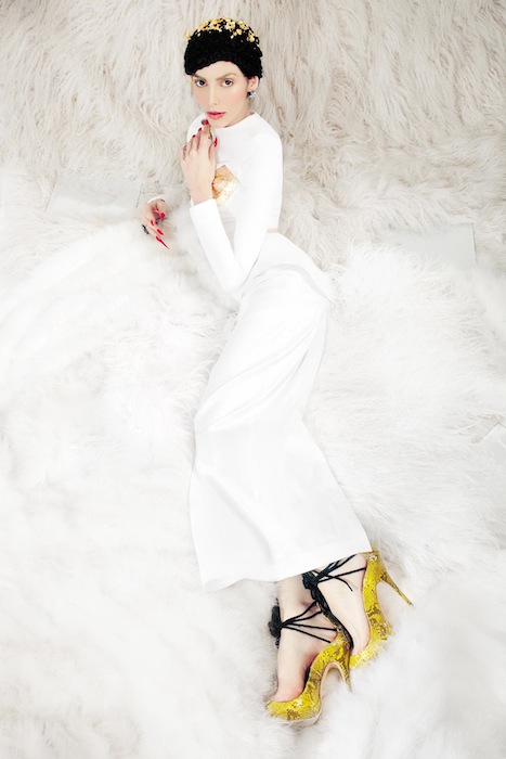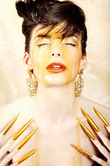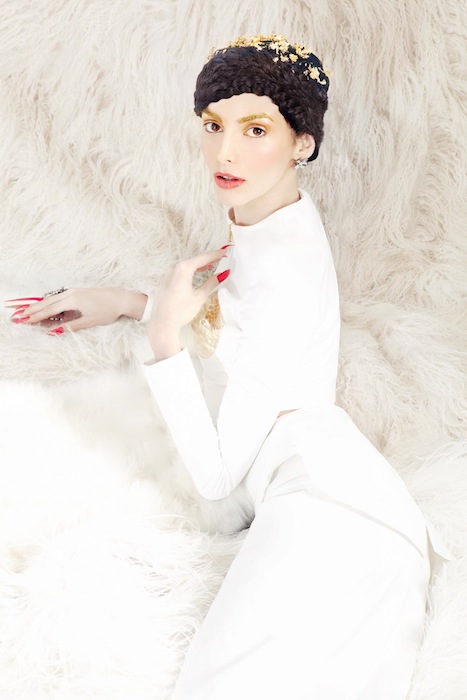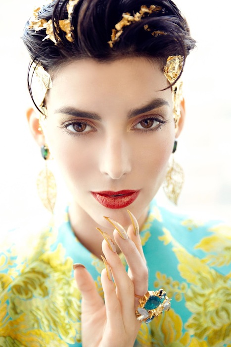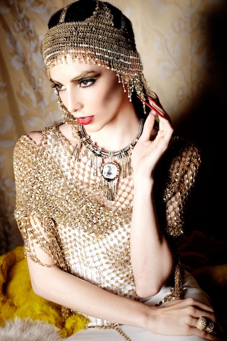 Transcend into a ethereal wonderland with the ‘Descending Goddesses’ editorial by photographer Audrey Froggatt. Model Rachele Schank looks fit for a queen, taking over the throne with elegance and sexiness. She’s decked in eye-catching embellishments like crazy long gold nails and gorgeous headpieces in these fantastic shots. Plus, the styling by Faustina Rose details this girl like a rockstar, with pieces from our favorites including the Blonds, Houghton, and Mathieu Mirano. The dazzling continues with Erickson Beamon jewels + Swarovski bling.
