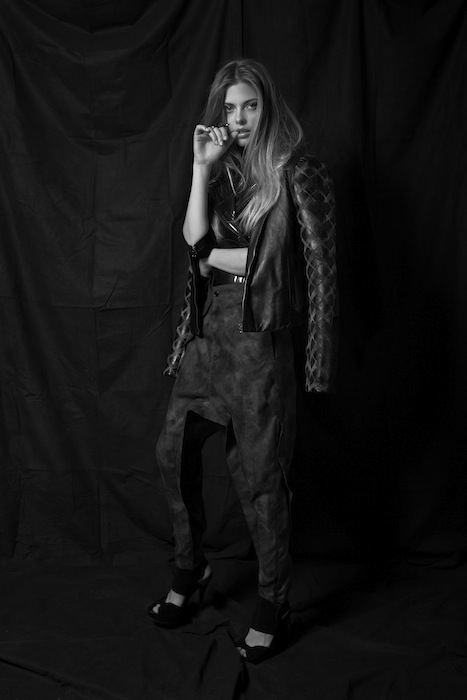 “Tough Angel” exclusive editorial shot by Eddie Collins for Fashion Daily Mag. Featuring sweet faced Alina (Q models) giving us a tough attitude. Leathered + textured fashion for fall includes up and coming fdmLOVES favorites include Vereda NYC, Koonhor, Cody Ross, and Dominic Louis. Accessories by Dalila Pasotti and Facon Facon, shoes by Pedro Garcia. Art direction by Brigitte Segura, styling by Anthony Pedraza, Hair + Make-up by Dawn Nicole.