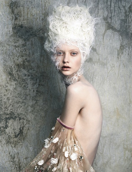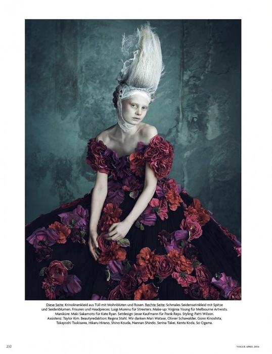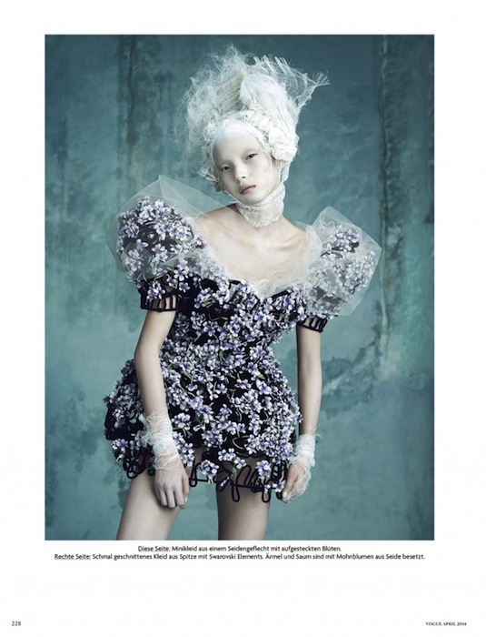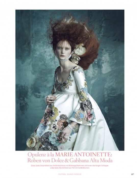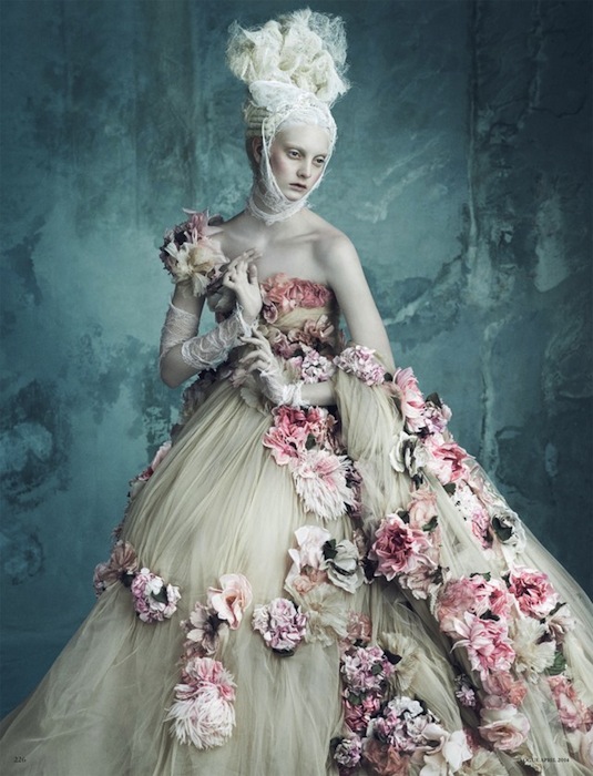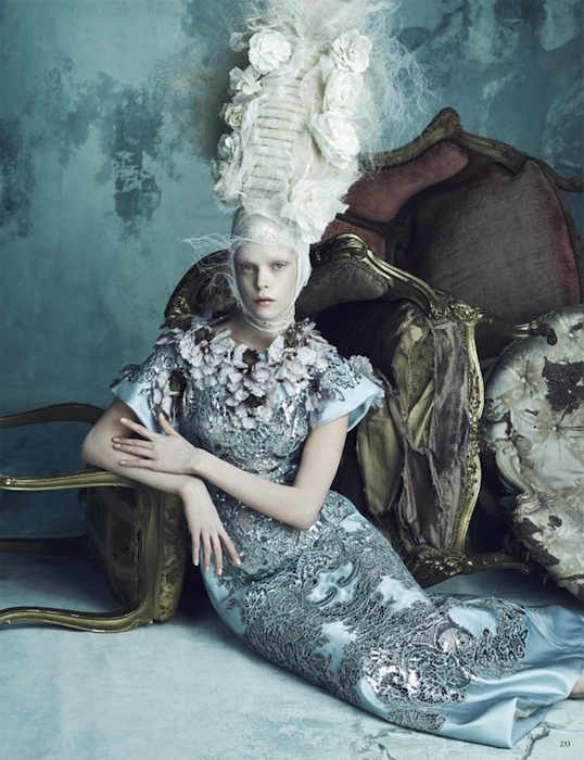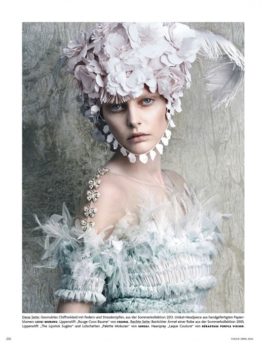 This beautiful batch of visuals! All the pretties.. opulence, and a hint of Marie Antoinette. Two breathtaking editorials shot by Luigi + Lango for Vogue Germany April 2014. “Korbfarbeit” features models Maja Salamon, Codie Young, Auguste Abeliunaite, Nastya Kusakina, Irina Kravchenko, and Hanne Gaby Odiele. Styling Patti Wilson, Set Designer Jesse Kaufmann, Make up by virginia young.