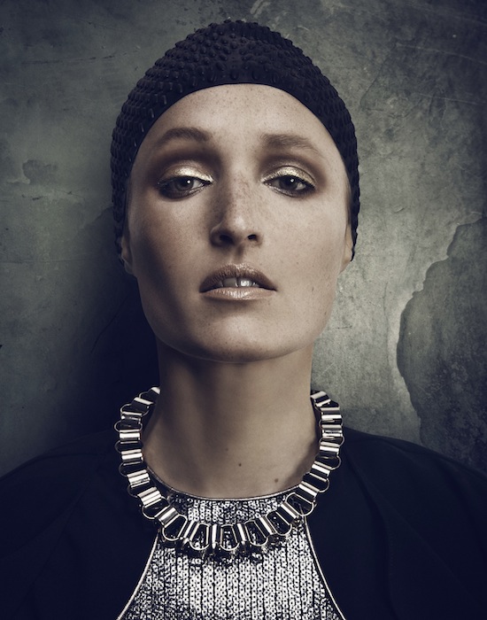 Bling and swim editorial: Simone Hanke Photographed by Christopher Logan. Stylist Dann Ryan, Hair and Make up by Mary Irwin. Jeweled swimwear perfect for this hot and cool current weather.