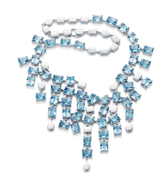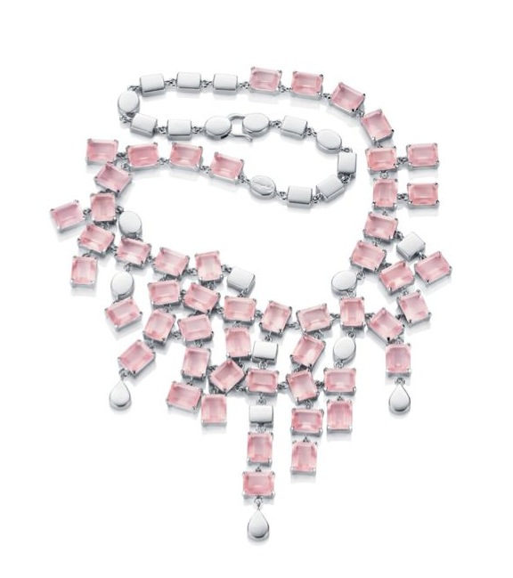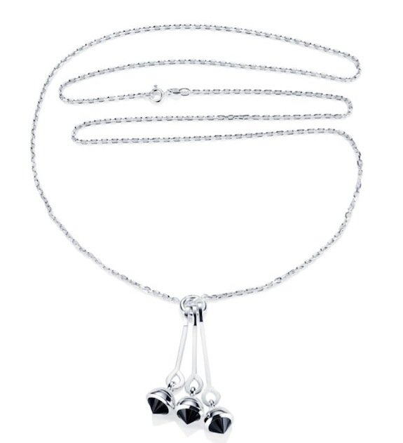 The Crystal series is elegant with a ‘new pastel’ brush, with Crystal Rain silver necklace with rock crystal, rose quartz, or topaz. The Blue Lagoon necklace has a similar aesthetic with silver and sky blue topaz. The silver necklaces with hanging pendants tipped with rose cut onyx are streamlined and the ring version is decidedly modern. The Me, Myself, and I set captures the dangling movement as well with inscribed earrings and a necklace.