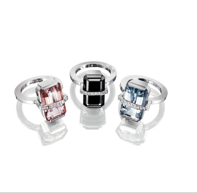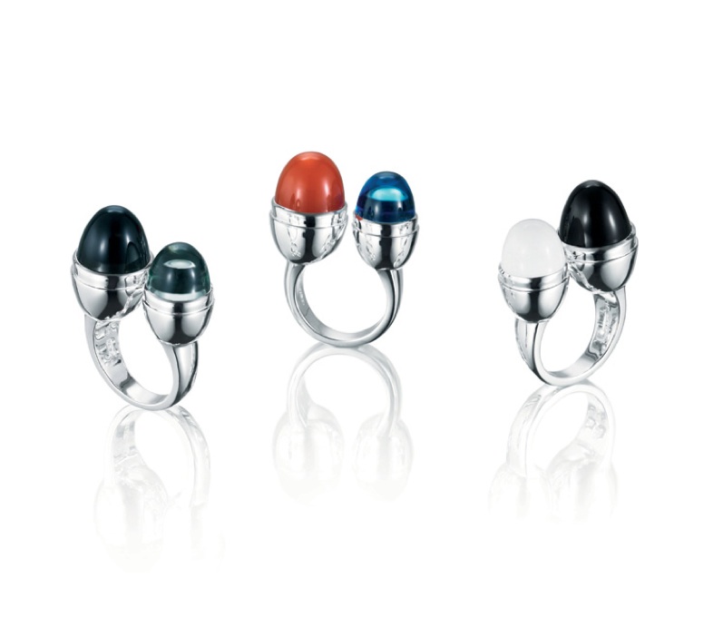 Heading in a little more hands on direction, the Sweets For My Sweet grouping of candy-colored cocktail rings have oval cabochon-cut semi-precious stones of Smoky Quartz, Green Amethyst, Topaz, and Carnelian. Attling, has said the Passion Rings are some of her faves – the two rings are linked with a chain and are completely sexy worn together, or alone.“ Beauty with a Thought” by Efva Attling. Spring 2013 Jewelry selection Brigitte Segura, Written by Sarah A. Freiseis.