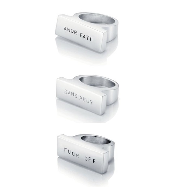 We just peeped the Spring 2013 lookbook from Efva Attling, jewelry creations featuring several mini-collections that reflect her playful vision and clever understanding of word play. The designer, also a musician, is always inspired by the medium of sound- the Efva and Yoko Ono duo “Imagine | Peace” reversible pendant and ring were a couple of our faves.