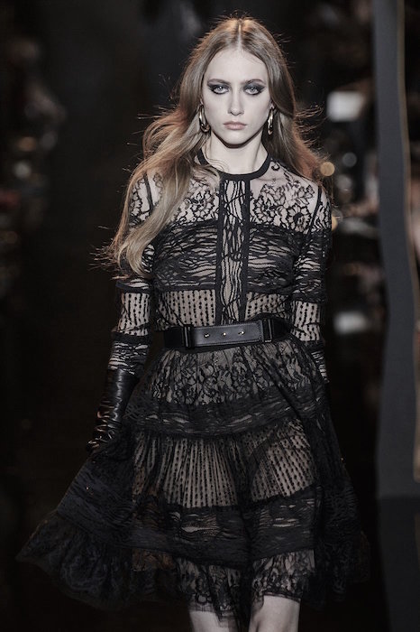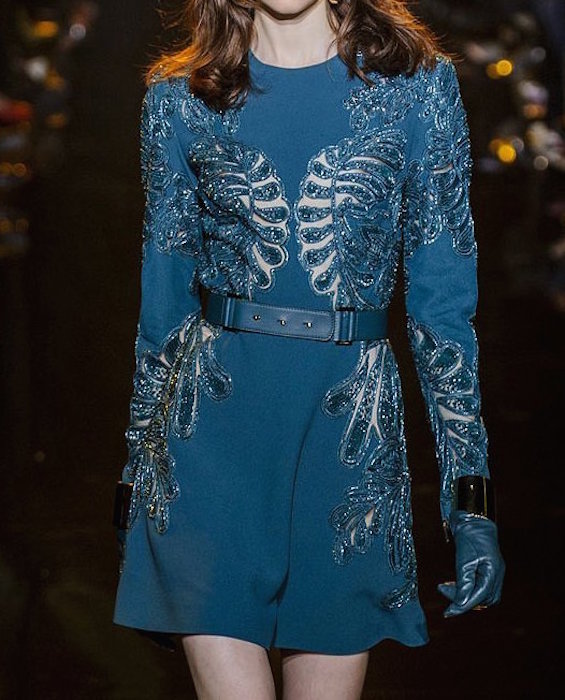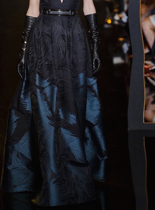 Indeed a SAAB world. From the blue parade featuring some patterned action to the burnout lace on looks with modest flash, Elie Saab keeps making feminine dresses for everyone. Jewel toned gowns featuring the embellished melange of embroidery + sequins was present as always, ready for the red carpet. Some new head-turners this season came in cocktail lengths, with leather making a more obvious appearance.