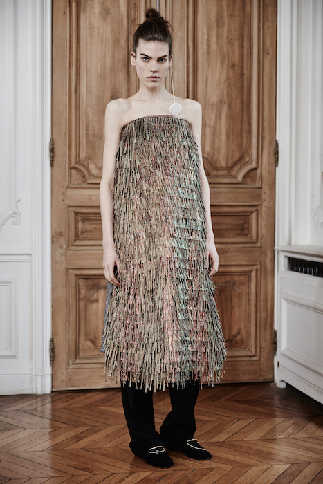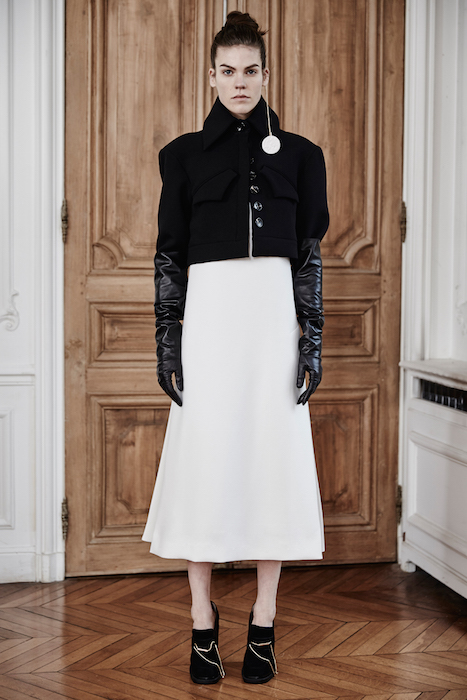 Inspired by contorted nudes of Egon Schiele’s expressionistic paintings, the E L L E R Y fall 2015 collection fused artsy + minimal in their looks. Dynamic textures of suede and brocades mix with appliquéd lace and metallic fringe while remaining tailored in silhouette. Decidedly modern, with both voluminous and shrunken details, this collection is perfect for the now girl. Here are a few favorites from PFW!
