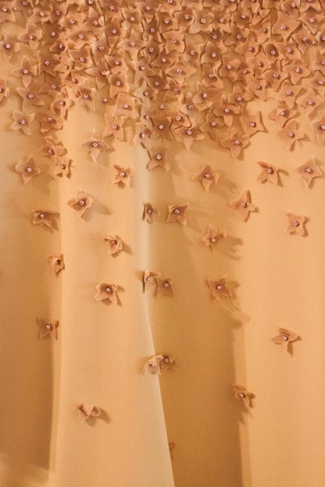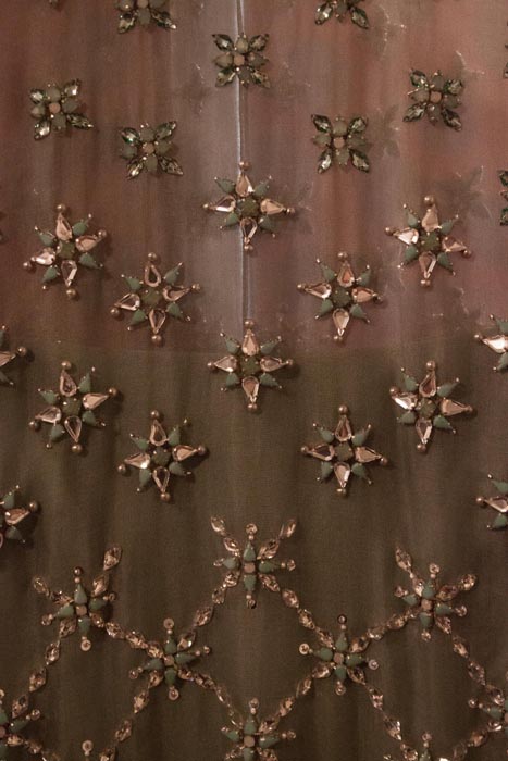 Ever wonder what your favorite lines look like up close? We recently had the pleasure of seeing gorgeous pieces by Noon by Noor up close and personal. These flowery and dazzling embellishments are works of art…can you imagine sewing each sparkly flower by hand? The results are romantic and delicately feminine, not to mention downright amazing. Any girl would be pretty as a princess in these pieces. Absolutely luxurious.