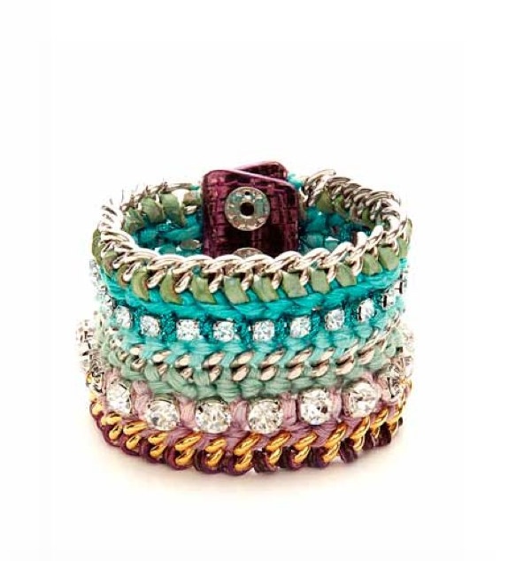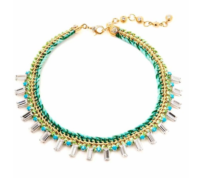 Add some dazzling dangle with jewels. Wow a crowd with the ultimate indulgence — a square cut Tiffany & Co Emerald Diamond Ring. For something a little more casual, try the multi-tiered Olivia Necklace in green by Ann and Arayata ($86). The hand beaded style is available in lengths between 19″-22″ and is inspired by traditional designs of the southern Philippines. Mix, match, and layer with pieces from the Henri Bendel collection of Spring 2013 accessories like the Delicate Girlfriend Crystal Collar selling at $158, the mutli-colored Delux Girlfriend Wrap Bracelet going for $128, and the sparkly Harry Link Bracelet retailing at $298. Another way to add a pretty pop is to go with some arm candy colored purses! Designer Stacey Bendet of Alice + Olivia is hot on the trend, keeping it cool with a leather bowling-like bag for pre-fall 2013.