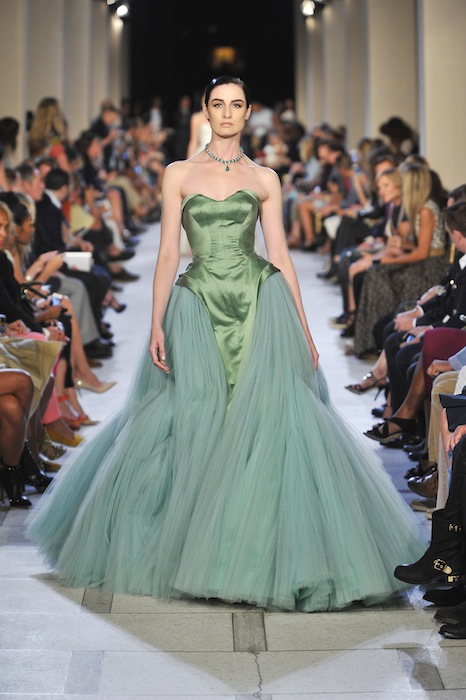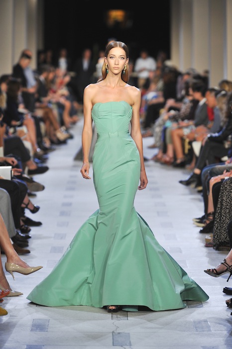 Fashions are fabulously stunning in this red-carpet ready hue. Two dresses highlighted during the Zac Posen SS13 runway show completely embraced the look. One a clean mermaid shape, the other a belle of the ball princess cut gown, both, simply divine. Have fun going the kitschy route with German brand, MAC, for their 2013 Spring Summer Womens Collection. Easy and on target with a skinny fit long legged seafoam translation.