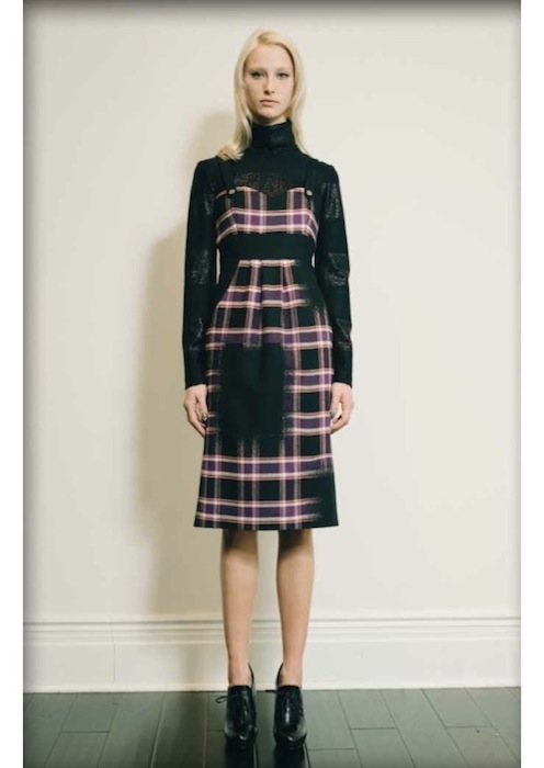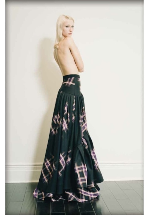 The intriguing idea of the post-apocalyptic world turned Jackie Fraser-Swan, a Boston based designer’s brand Emerson, into a 2013 contemporary version of school house rock. The rebel-chic collection exhibited earth toned plaid, lined, and modestly collared pieces. Unique cuts and asymmetrical linings contributed to the entirety of the fall look.