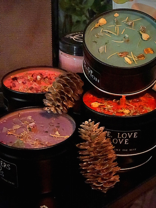 Festive mood meets Rebels and Outlaws… For the bright times ahead with family and friends, light a dose of Love, Love, Love; Laws of Attraction, Pride, and maybe Sister Witch to yield fun times ahead. These travel-friendly handcrafted candles are made New York, with added sprinkles of flower petals and herbs that smell divine.