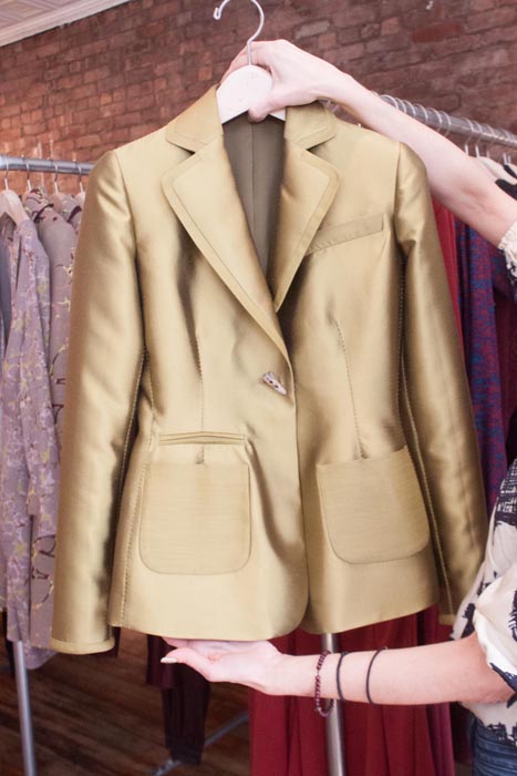 Though we peeked backstage and front row at Costello Tagliapietra Fall 2014 runway collection during NYFW, we had to get an even closer look. There is nothing understated about these magnificent details. For starters, the fabrics are amazing: unique patterns, impeccable details inside and out and not a wrinkle in sight. We snapped a few close-ups recently, here’s a peek at what we got to see including the new tailored jackets which are actually tailored..