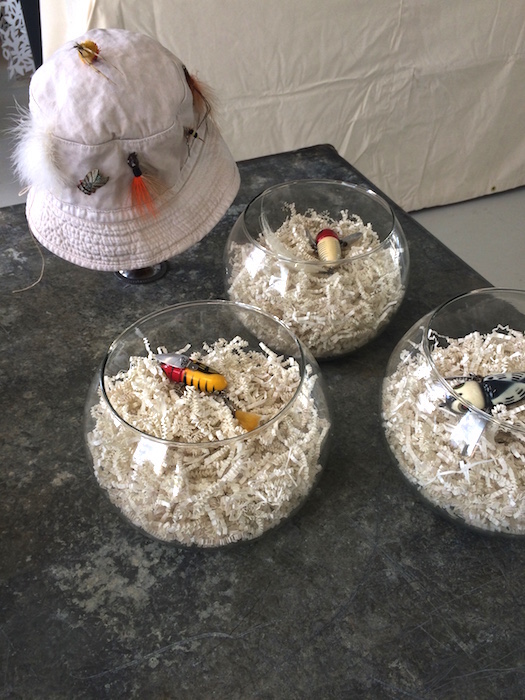 RevizionistHistory limited edition white hat with vintage fishing lures.