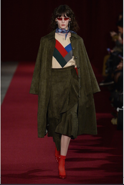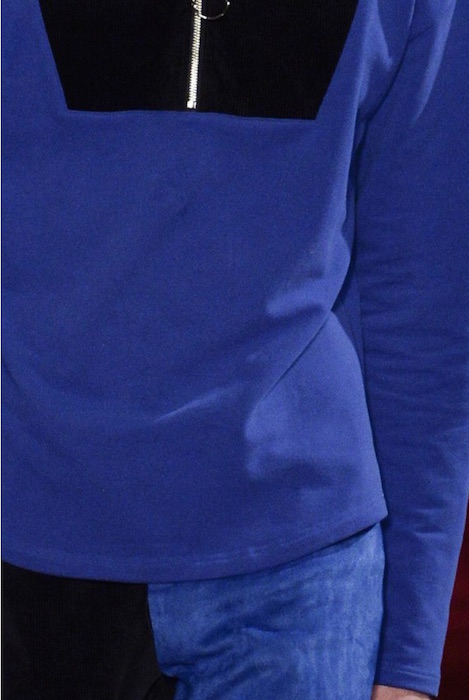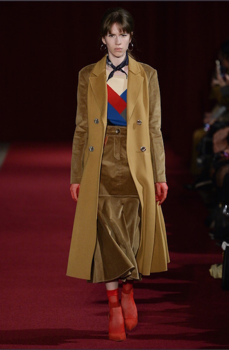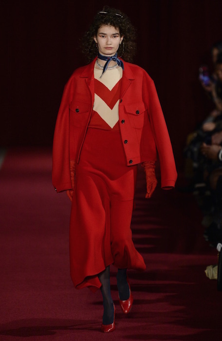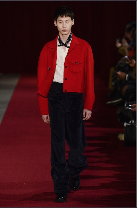 In the mood for fall layering with a hot pop of color. Young designer Calvin Luo adds a colorblocked splash of hot red + blue to cheer typical fall colors. Mixing cords + wintery textures in bold tones. Another look at fave looks for fall 2018.