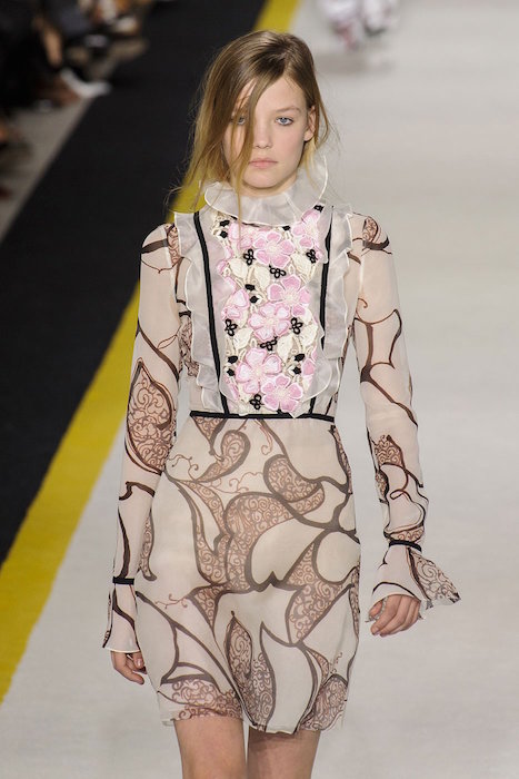 Spring may be synonymous with floral fashion, but it looks like the trend is flourishing well into fall 2015. This autumn, seventies influenced prints and textured embellishments take the spotlight. The use of 3D appliqué at shows such as Giambattista Valli, Naeem Khan, and Alexander McQueen provided a modern take on the perennial trend, while Carven and Burberry opted for retro tapestry-like prints.