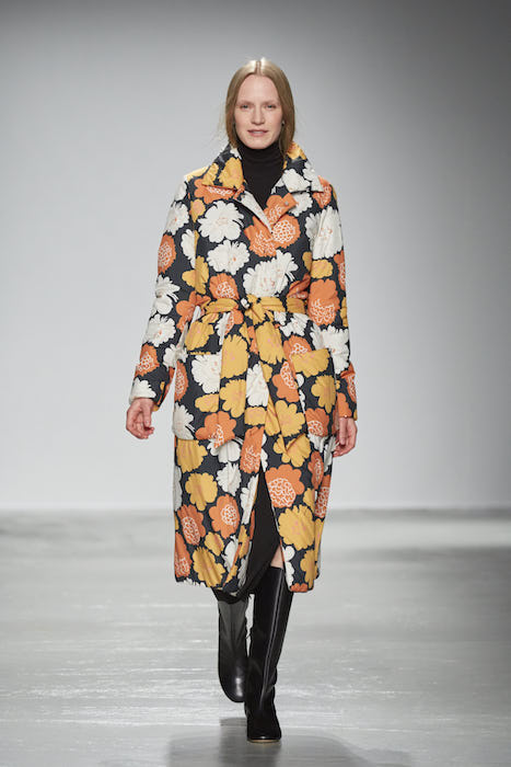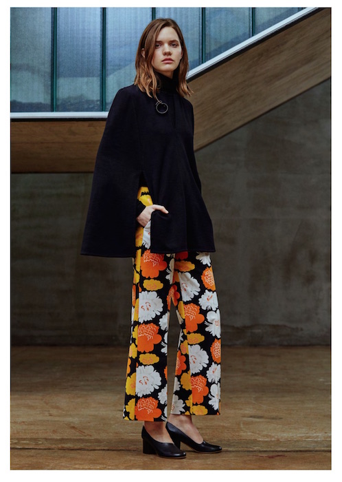 The collection features surprising juxtapositions, asymmetric silhouettes for fall, featuring Marimekko’s Finnish design sensibility of prints with interesting color in fashionable functionality.