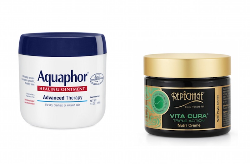 Aquaphor Healing Ointment advanced therapy is what should be in everyone’s medicine cabinet + body lotion collection. This Uniquely formulated drugstore staple is designed to restore healthy skin. It protects, soothes extremely dry skin, chapped lips, cracked hands and feet and skin irritations. Though the texture can be thick to put on all over the body, try using it on rough elbows, heels, and extra dry spots in the winter. In my case, my legs get so dry in the fall and winter from the indoor dry heat, I use it as an extreme moisturizer all over my legs and irritated dry skin. Plus, this healing formula is apply on minor cuts, scrapes + burns. For feet, smooth on the heels and dry spots, put on the socks, and wake up softer! Dermo recommended.